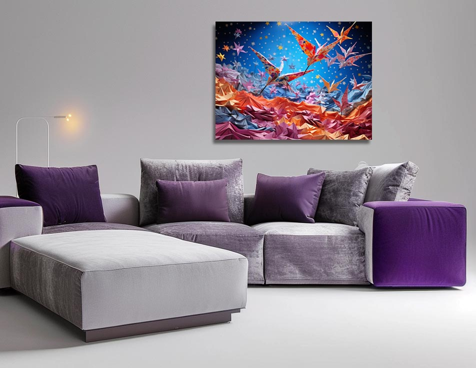 Gładka powierzchnia o niskim współczynniku odbicia światła zapewnia doskonałą czytelność i wysokiej jakości odwzorowanie obrazu z wysokim kontrastem, charakteryzuje się dużą intensywnością kolorów. Dzięki zastosowaniu wysokiej jakości tuszy UV obraz zyskuje niesamowity efekt. Obraz nie posiada ramki, a jej wnętrze to karbowany rdzeń z tektury. Montowany jest do ściany za pomocą dołączonych do paczki rzepów. Wystarczy przykleić je do ściany oraz obrazu. Dzięki bardzo małej wadze, obraz jest niesamowicie łatwy w montażu. Nie wymaga wiercenia czy kołków montażowych. Wykonany w 100% z papieru z odnawialnego pierwotnego włókna ECF z lasów zarządzanych w sposób zrównoważony o strukturze wewnętrznej plastra miodu. Obraz posiada idealnie płaską powierzchnię, która oddaje niesamowitą jakość, głębie i efekt wizualny. Płyty te wyróżniają się opatentowanym, unikalnie zaprojektowanym karbowanym rdzeniem nachylonym pod kątem 15°. Tak zaprojektowany rdzeń zapewnia doskonały stosunek wytrzymałości do wagi. Wielowarstwowa struktura i podwójnie powlekana strona wierzchnia, zapewniają bezproblemowe składanie i umożliwiają wymagające wykończenie. Powleczenie i rdzeń płyty nie zawierają tworzyw sztucznych i są wykonane w 100% z papieru. Płyta wykazuje najniższą emisję i ślad węglowy ze wszystkich materiałów w swojej klasie. Powłoka zewnętrzna jest BEZ PVC, przyklejana za pomocą nietoksycznych klejów na bazie wody! Podlega 100% recyklingowi. Obraz nie zawiera szkodliwych składników. Tekturę można poddać recyklingowi jako papier w normalnych strumieniach makulatury. Ponadto, płyta z którego wykonany jest obraz to pierwszy na świecie producent sztywnej tektury, który niezależnie mierzy emisje CO2 w oparciu o wytyczne CEPI i ISO 14040.