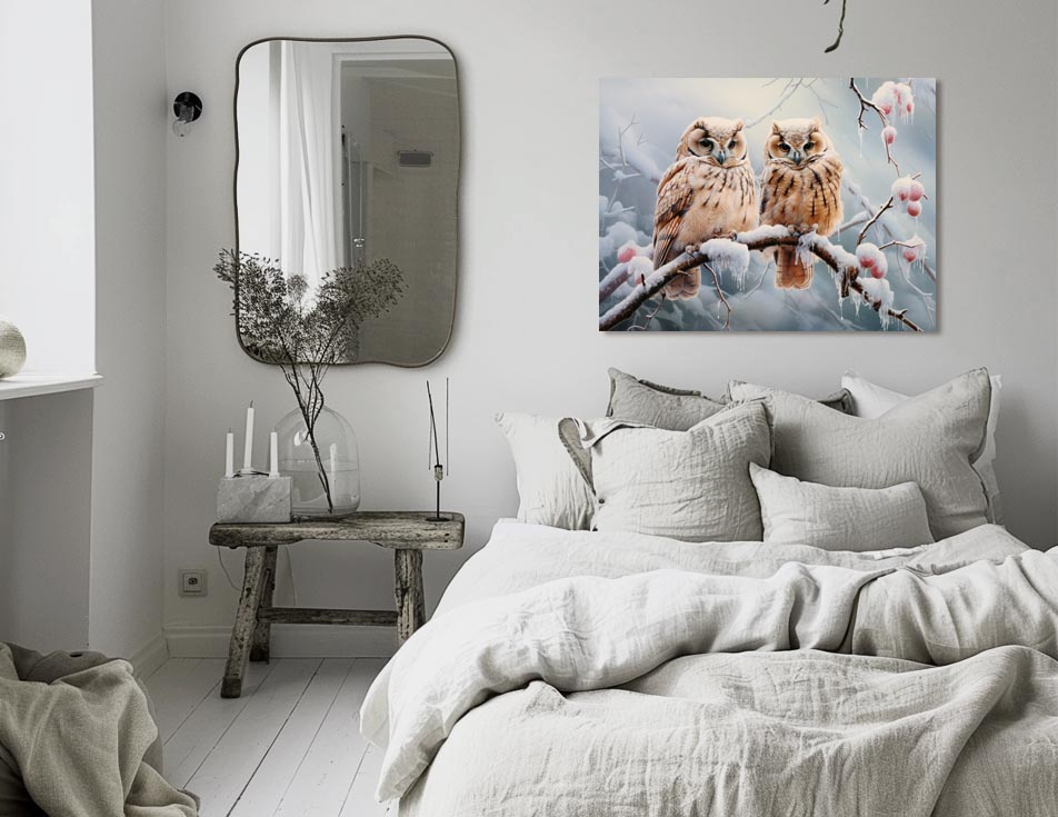 Gładka powierzchnia o niskim współczynniku odbicia światła zapewnia doskonałą czytelność i wysokiej jakości odwzorowanie obrazu z wysokim kontrastem, charakteryzuje się dużą intensywnością kolorów. Dzięki zastosowaniu wysokiej jakości tuszy UV obraz zyskuje niesamowity efekt. Obraz nie posiada ramki, a jej wnętrze to karbowany rdzeń z tektury. Montowany jest do ściany za pomocą dołączonych do paczki rzepów. Wystarczy przykleić je do ściany oraz obrazu. Dzięki bardzo małej wadze, obraz jest niesamowicie łatwy w montażu. Nie wymaga wiercenia czy kołków montażowych. Wykonany w 100% z papieru z odnawialnego pierwotnego włókna ECF z lasów zarządzanych w sposób zrównoważony o strukturze wewnętrznej plastra miodu. Obraz posiada idealnie płaską powierzchnię, która oddaje niesamowitą jakość, głębie i efekt wizualny. Płyty te wyróżniają się opatentowanym, unikalnie zaprojektowanym karbowanym rdzeniem nachylonym pod kątem 15°. Tak zaprojektowany rdzeń zapewnia doskonały stosunek wytrzymałości do wagi. Wielowarstwowa struktura i podwójnie powlekana strona wierzchnia, zapewniają bezproblemowe składanie i umożliwiają wymagające wykończenie. Powleczenie i rdzeń płyty nie zawierają tworzyw sztucznych i są wykonane w 100% z papieru. Płyta wykazuje najniższą emisję i ślad węglowy ze wszystkich materiałów w swojej klasie. Powłoka zewnętrzna jest BEZ PVC, przyklejana za pomocą nietoksycznych klejów na bazie wody! Podlega 100% recyklingowi. Obraz nie zawiera szkodliwych składników. Tekturę można poddać recyklingowi jako papier w normalnych strumieniach makulatury. Ponadto, płyta z którego wykonany jest obraz to pierwszy na świecie producent sztywnej tektury, który niezależnie mierzy emisje CO2 w oparciu o wytyczne CEPI i ISO 14040.