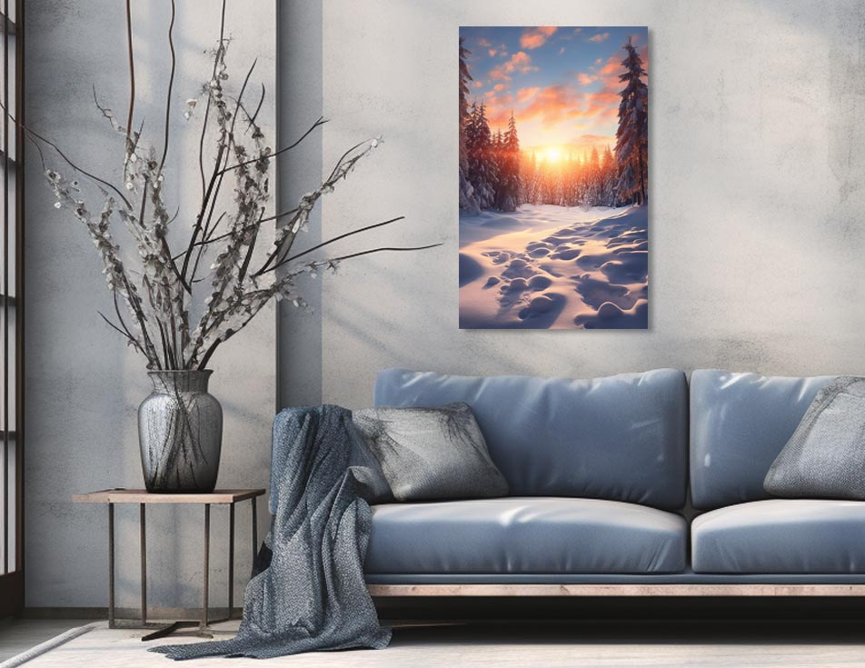 Gładka powierzchnia o niskim współczynniku odbicia światła zapewnia doskonałą czytelność i wysokiej jakości odwzorowanie obrazu z wysokim kontrastem, charakteryzuje się dużą intensywnością kolorów. Dzięki zastosowaniu wysokiej jakości tuszy UV obraz zyskuje niesamowity efekt. Obraz nie posiada ramki, a jej wnętrze to karbowany rdzeń z tektury. Montowany jest do ściany za pomocą dołączonych do paczki rzepów. Wystarczy przykleić je do ściany oraz obrazu. Dzięki bardzo małej wadze, obraz jest niesamowicie łatwy w montażu. Nie wymaga wiercenia czy kołków montażowych. Wykonany w 100% z papieru z odnawialnego pierwotnego włókna ECF z lasów zarządzanych w sposób zrównoważony o strukturze wewnętrznej plastra miodu. Obraz posiada idealnie płaską powierzchnię, która oddaje niesamowitą jakość, głębie i efekt wizualny. Płyty te wyróżniają się opatentowanym, unikalnie zaprojektowanym karbowanym rdzeniem nachylonym pod kątem 15°. Tak zaprojektowany rdzeń zapewnia doskonały stosunek wytrzymałości do wagi. Wielowarstwowa struktura i podwójnie powlekana strona wierzchnia, zapewniają bezproblemowe składanie i umożliwiają wymagające wykończenie. Powleczenie i rdzeń płyty nie zawierają tworzyw sztucznych i są wykonane w 100% z papieru. Płyta wykazuje najniższą emisję i ślad węglowy ze wszystkich materiałów w swojej klasie. Powłoka zewnętrzna jest BEZ PVC, przyklejana za pomocą nietoksycznych klejów na bazie wody! Podlega 100% recyklingowi. Obraz nie zawiera szkodliwych składników. Tekturę można poddać recyklingowi jako papier w normalnych strumieniach makulatury. Ponadto, płyta z którego wykonany jest obraz to pierwszy na świecie producent sztywnej tektury, który niezależnie mierzy emisje CO2 w oparciu o wytyczne CEPI i ISO 14040.